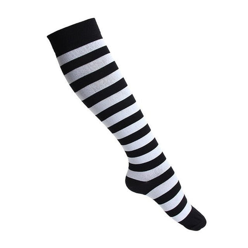 Eine Kollektion heller und farbenfroher hoher Kompressionssocken für Damen.