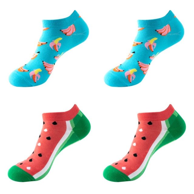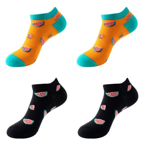 Bananas and Watermelon Unisex Ankle Sock Set (4 Pairs) - Crazy Sock Thursdays