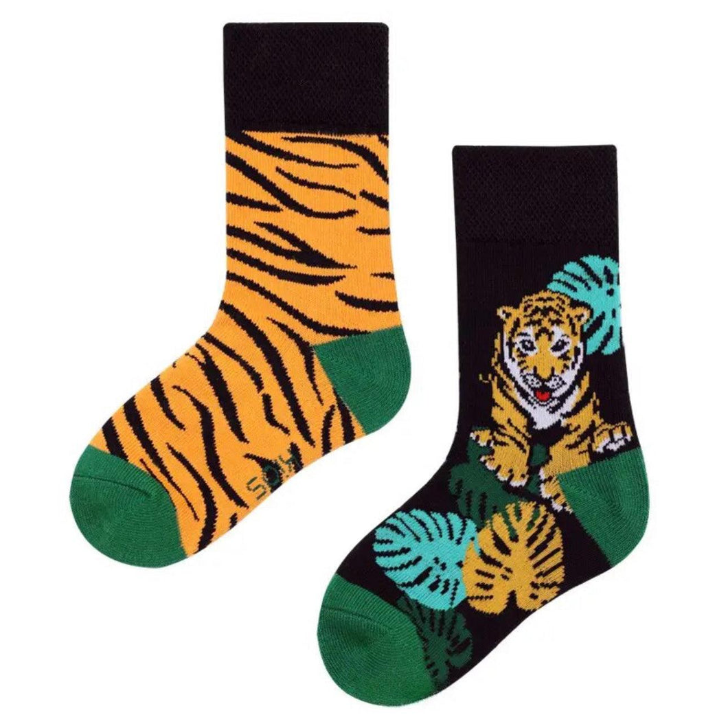 Wir stellen die perfekten Socken für Kinder vor, die es lieben, mit Stil herumzuspringen. Unsere Prowling Tiger Odd Paired Crazy Socken verfügen über ein verspieltes Tigerdschungel-Design, was sie sowohl süß als auch einzigartig macht. Ein Muss für jede ausgefallene Kindersockensammlung!