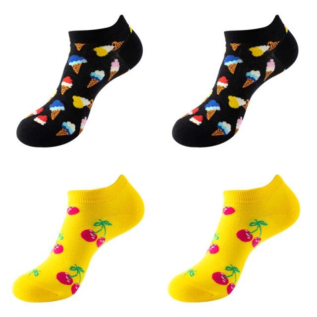 Ice Cream and Cherries Unisex Ankle Sock Set (4 Pairs) - Crazy Sock Thursdays