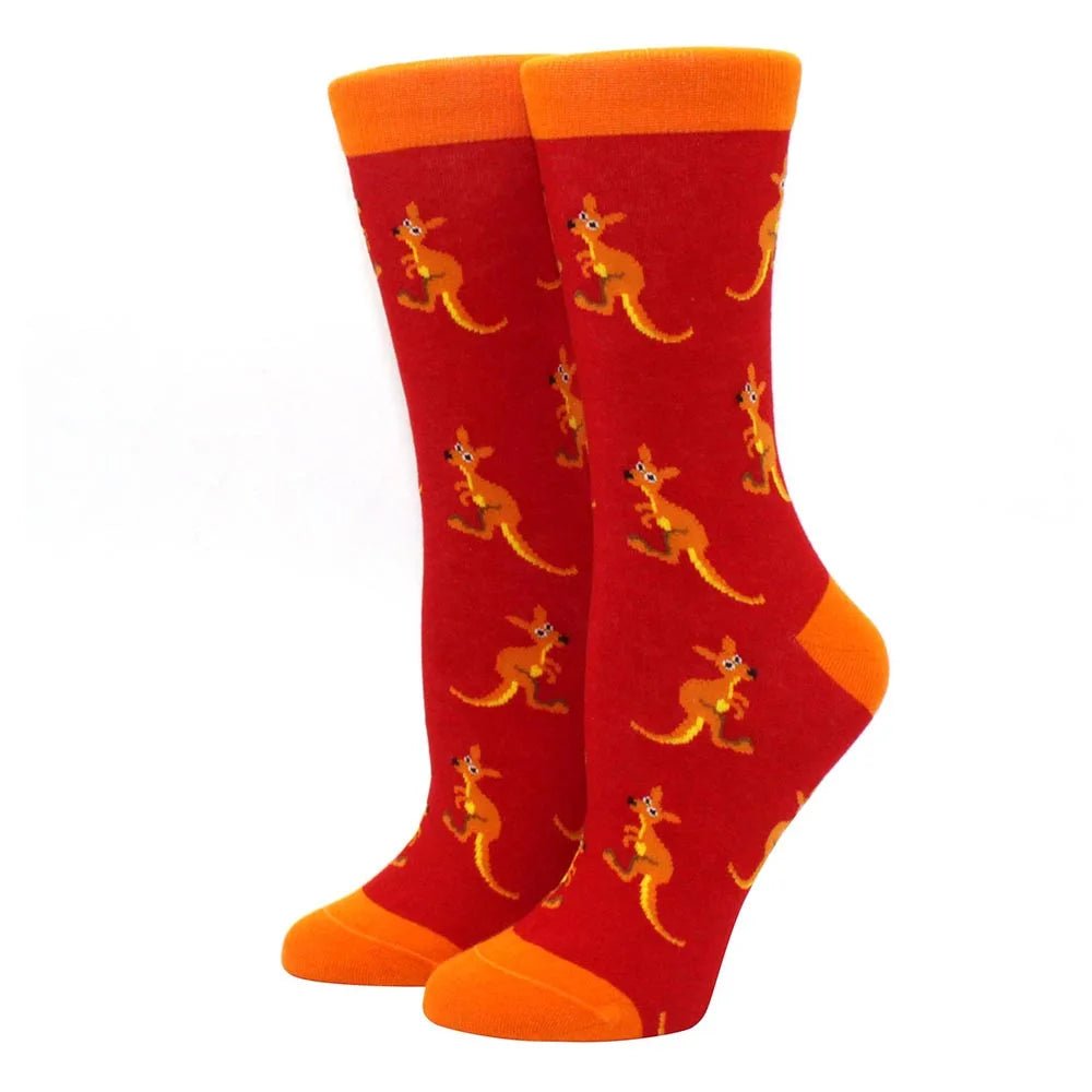 Kangaroos on Red Crazy Socks - Crazy Sock Thursdays